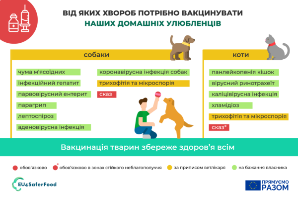 Стосовно інших видів щеплень собак і котів – детальна інформація в спільних із європейським проєктом EU4SaferFood інфографіках.