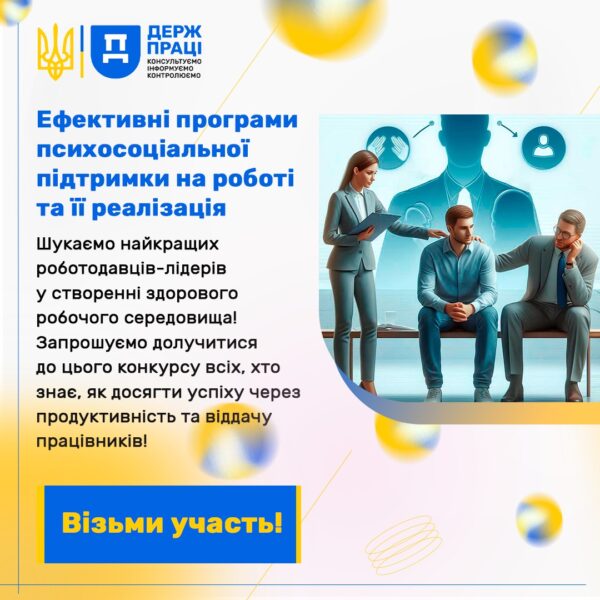 Участь у конкурсі беруть юридичні та фізичні особи – підприємці всіх видів діяльності та форм власності з території всієї України, які дбають про ментальне здоров’я своїх працівників та запровадили або запроваджують психосоціальну підтримку працівників на робочому місці.