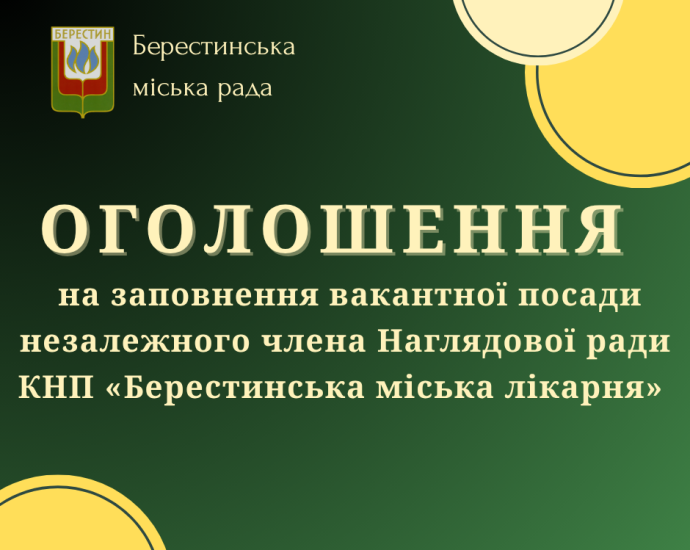 Інформація Берестинської міської ради про прийняття рішення про включення об’єкта до переліку нерухомого майна комунальної власності територіальної громади, що підлягають приватизації та про приватизацію об’єкта, з метою вивчення попиту 19 березня 2026 року на черговому пленарному засіданні міської ради прийнято такі рішення: рішення міської ради № 6835-VIII «Про внесення змін до переліку об’єктів комунальноїЧИТАТИ БІЛЬШЕ