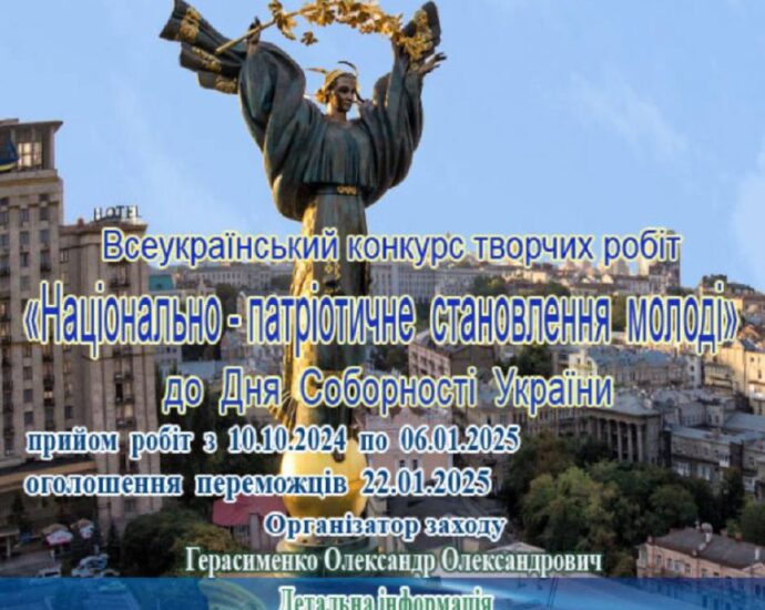 Інститут політико-правових та релігійних досліджень з нагоди відзначення Дня Соборності України проводить Всеукраїнський конкурс творчих робіт «Національнопатріотичне становлення молоді»